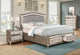Create a bedroom that exudes Hollywood glamour with the Ameni Metallic Platinum 4pc Bedroom Set with King Drawer Bed. This exquisite set comprises a luxurious king drawer bed, two matching nightstands, and a dresser, all crafted from high-quality materials and adorned with a shimmering metallic platinum finish. The king drawer bed features a plush velvet camel back shape headboard and mirror, while the nightstands and dresser complement the bed with their sleek, contemporary silhouettes and ample storage space.