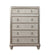 The Ameni Metallic Platinum 6 Drawers Chest is a stylish and elegant piece of furniture that is perfect for any bedroom. The chest features a metallic platinum finish with a hand-applied highlight glaze, and individually mounted mirror tiles that create a glamorous Old Hollywood aura. The top drawers are felt-lined to protect your jewelry and other delicate items. The chest also includes metal extension drawer glides, a French front, and an English back dovetail.
