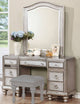Embrace the epitome of modern luxury with the Ameni Metallic Platinum 7 Drawers Dresser and Mirror set. This exquisite duo exudes glamour and sophistication, seamlessly blending into any bedroom decor.