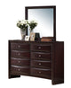 Introducing the 8-Drawer Dresser, a must-have for your bedroom. With its eight spacious drawers, you'll have ample storage space to keep everything organized and clutter-free. The bottom drawers even come with a dust proofing layer, ensuring your belongings stay protected and clean. The sleek silver finish metal knobs add a touch of elegance to the drawer fronts, complementing the rich mahogany finish of the dresser. Its transitional design effortlessly blends with any existing decor, while the clean lines give it a contemporary edge. Bring style and functionality together with this timeless addition to your home.