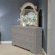 Elevate the elegance of your living space with the exquisite European Traditional 7-drawer dresser. Its distinct Weathered Bisque finish creates a one-of-a-kind aesthetic that is sure to catch the eye. With an abundance of storage options including 2 small drawers, 1 medium-sized drawer, and 4 larger drawers, this dresser will easily accommodate your belongings. Furthermore, the bottom case dust proofing ensures that your possessions remain protected and pristine. Adding a touch of softness and sophistication to the design are the canted corners and rounded pilasters, accentuated by the alluring bead molding adorning each drawer front.