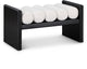 Elevate the style of your home with a touch of individuality courtesy of this exceptional bench from â€s exclusive collection. Meticulously built using sturdy rubber wood and adorned with a sleek black finish, this bench exudes an air of confidence that is guaranteed to catch the eye in any room. The striking H-shaped design effortlessly cradles five sumptuous black boucle fabric cushion rolls, ensuring a luxurious and cozy seating experience for both you and your guests. With ample space to accommodate more than one person, this bench is not only a stylish addition but also a practical solution for extra seating. Its contemporary aesthetic will seamlessly complement any modern home, instantly transforming your living space into a true haven of sophistication.