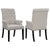 The Cozee Home Chinchawade Sand Tufted Arm Chair with Nailhead Trim is a transitional armchair that features an elegantly rolled backrest, rolled armrests, and plush button-tufted upholstery. The soft sand velvet upholstery and square shape tapered legs in a rustic espresso finish exude a refined and timeless aesthetic. The chair also features individually hand-placed matte gunmetal nailhead trim that adds a touch of understated glamour.