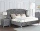 Envelop your bedroom in an aura of modern elegance with the Dhabdhabewadi Grey Velvet 4pc Bedroom Set with Queen Bed, a captivating ensemble that exudes sophistication and glamour. This exquisite set includes a fully upholstered queen bed, two matching nightstands, and a dresser with a mirror, all adorned in plush, soft grey velvet and tufted with sparkling facetted buttons. Hand-applied nail head trims add a touch of refinement, while metal extension drawer glides and English dovetail front and back ensure smooth operation and exceptional durability. The bed features a fully slatted platform base, eliminating the need for a box spring.