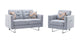 Elevate the elegance of your home decor with our remarkable collection of furniture. Crafted with a robust build framework and durable metal legs, each piece exudes strength and reliability. The timeless design showcases tufted seating and backs, adding a touch of sophistication to your living space. Sink into the sumptuous comfort of foam-filled seats adorned with pocket coil springs, providing optimal support for your relaxation needs. Stay organized and clutter-free by utilizing the convenient side pockets, perfect for keeping your phone and magazines at arm's length. With its captivating aesthetic, this loveseat and chair set effortlessly completes and enhances the overall ambiance of any room.