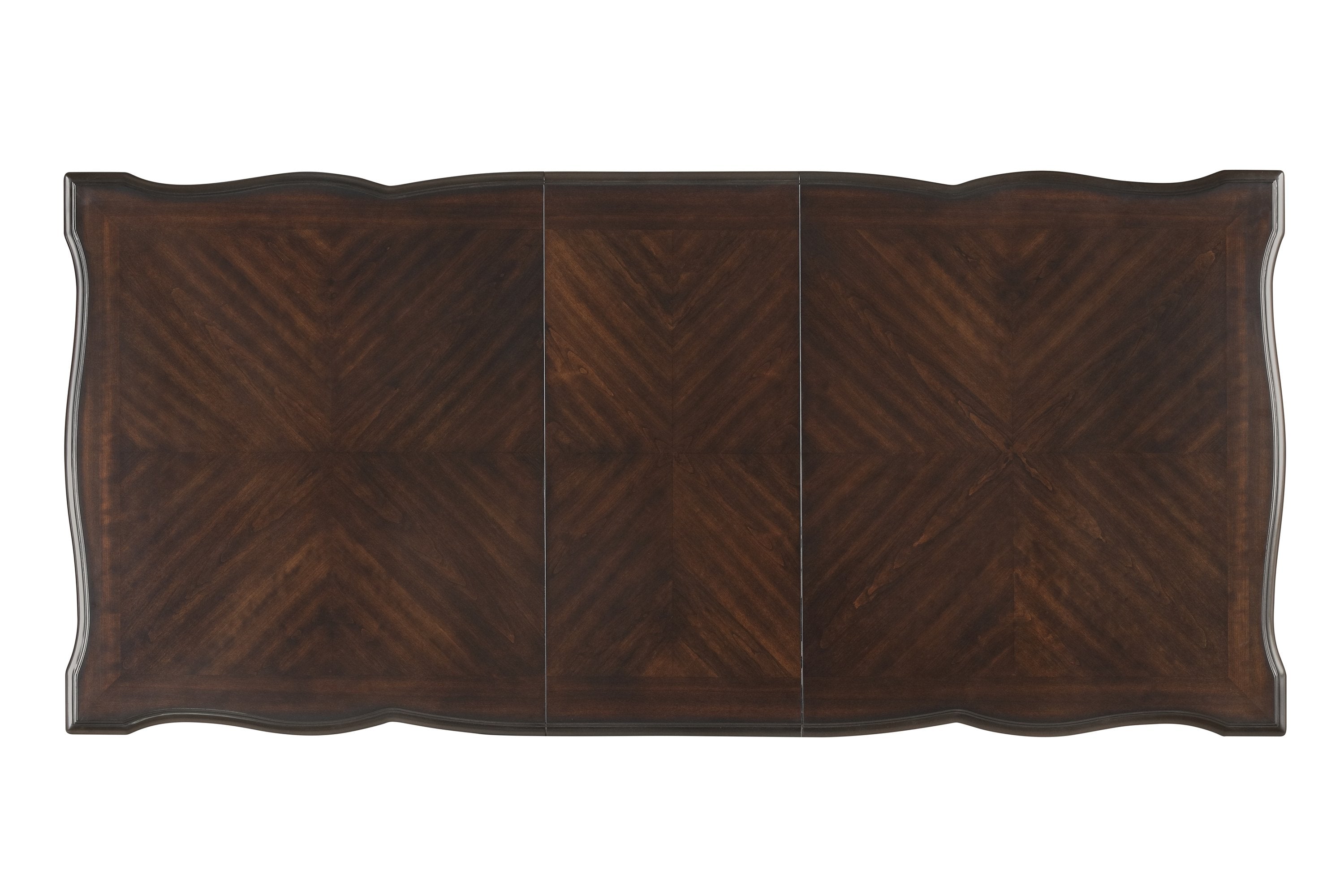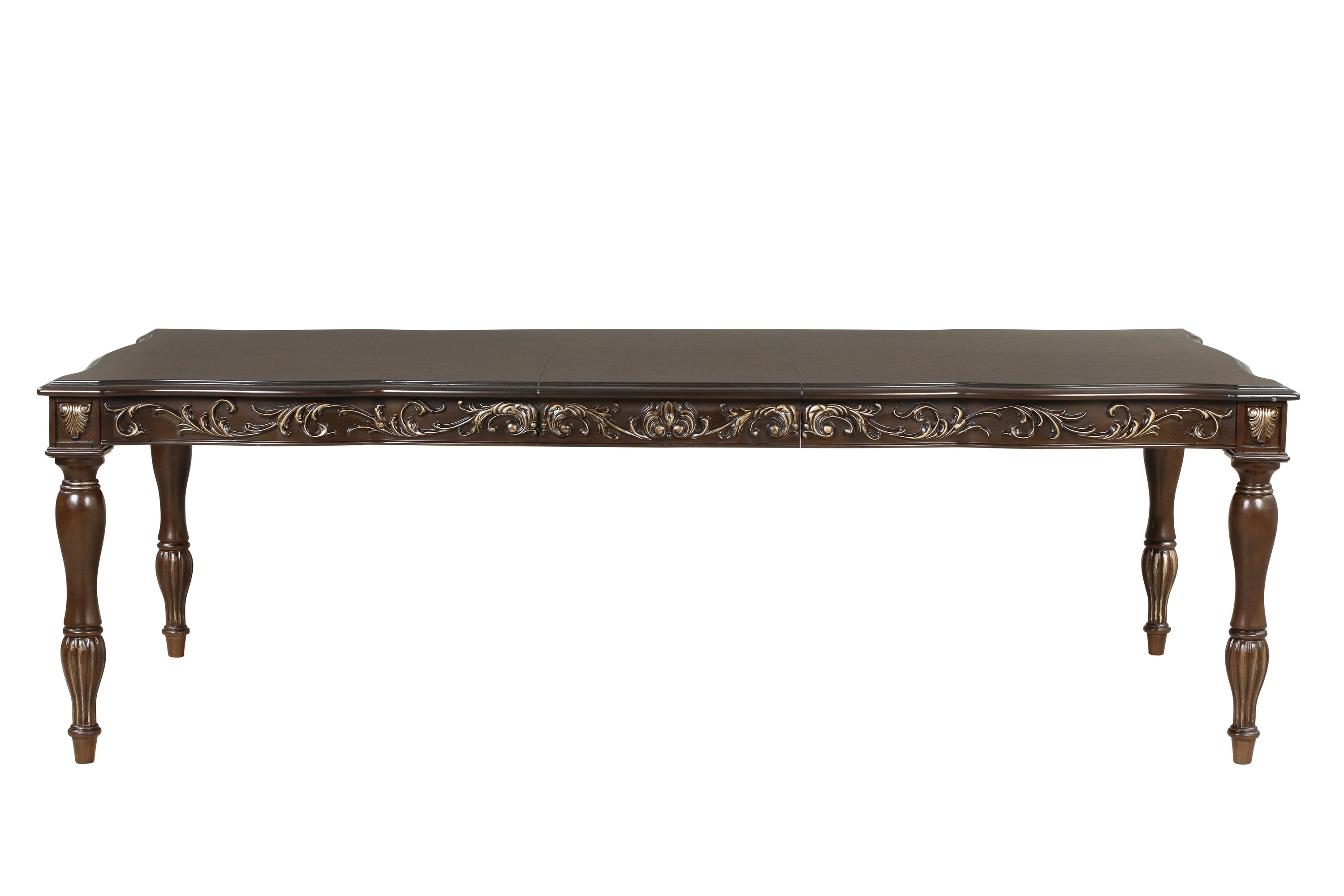 Introducing the Dining Collection, an exquisitely crafted set that brings a touch of European castle grandeur to your dining room. With its rich maderia cherry finish, complemented by gold trim and intricate carved moldings, this collection exudes a timeless heirloom style. The focal point is the scalloped edge table, featuring a rococo-inspired apron and a convenient leaf for larger gatherings. The chairs, adorned with button tufted upholstered backs and plush seat cushions, are framed with ornate wood and trim moldings that add a regal touch. To complete the luxurious look, the massive china cabinet captivates with its lighted display, showcasing your cherished glassware and chinaware. With velvet-lined drawers in the buffet for flatware and ample storage concealed behind four doors, this collection is as practical as it is opulent. Indulge in the royal flair of the Maximus Dining Room collection and elevate your home to a whole new level of elegance.