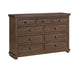 Introducing our farmhouse-inspired dresser with a touch of rustic charm. Crafted with care, this dresser showcases hand-applied distressing on rough hewn and planed pine solids, resulting in a natural finish that brings the beauty of the outdoors into your home. The sturdy construction includes solid planked panels on the tops and ends, along with oversized thick tops and parting rails for added durability. The drawers feature reliable tongue and groove construction with solid pine interiors, ensuring long-lasting functionality. Metal cup pulls, finished in a nostalgic gunmetal shade, accentuate the vintage appeal of this dresser. To complete the ensemble, the accompanying mirror boasts an extra-wide frame finished in a sophisticated Chalk Gray. Embrace the timeless elegance of this dresser, perfect for adding a touch of farmhouse allure to your home decor.