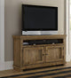 Introducing our exquisite 64" console, crafted with the utmost care to bring elegance and charm to your living space. Made from salvaged wood, this piece showcases a unique tongue and groove construction, reminiscent of timeless craftsmanship. The hand-applied distressing on rough hewn and planed pine solids creates a natural, vintage look, as if the paint has been chipped away to reveal the beautiful natural pine color. With solid planked panels, thick tops, and sturdy parting rails, this console is built to last. The gunmetal finish on the nostalgic knobs adds a touch of nostalgia and sophistication. Designed for convenience and functionality, this console features adjustable shelves, grommets for wire management, and wood doors. It is also specifically designed to accommodate most sound bars, making it the ultimate entertainment center. Rest assured, this console comes fully setup for your convenience. Elevate your home decor with this truly unique and stunning piece.