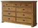 Immerse yourself in the charm of farmhouse aesthetics with our hand-distressed dresser and mirror set. Crafted from rough hewn and planed pine solids, each piece boasts a unique natural look. The dresser showcases solid planked panels on the tops and ends, offering durability and rustic appeal. The tongue and groove construction ensures sturdy cases, while the solid pine drawer interiors with metal positive stop guides and nostalgic cup pulls in gunmetal finish add a touch of vintage elegance. Complete the ensemble with the mirror featuring an extra wide frame, adding depth and style to any living space.