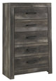 Introducing our captivating nightstand that seamlessly blends modern and rustic design elements. With its clean lines and minimalist-chic profile, it's a must-have for any contemporary space. The nightstand features a stunning replicated oak grain with thick plank styling and a weathered gray finish, giving it an authentic and charming character. To add a unique touch, we've incorporated large-scale hooded pulls on the flush-mount drawers, providing a distinctive twist to the overall aesthetic. Additionally, we've discreetly placed a dual USB charger, ensuring your devices are always conveniently charged. Don't miss out on this bold yet functional piece for your bedroom.
