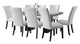 The Camila 9pc Dining Set is the perfect blend of elegance and functionality, making it a must-have for any modern home. This exquisite dining set features a spacious dining table and eight matching chairs, all crafted with precision and attention to detail. The table is designed with a sleek, minimalist aesthetic, while the chairs are upholstered in luxurious fabric for ultimate comfort. With its generous seating capacity, this dining set is ideal for entertaining guests or enjoying family meals. Whether you're hosting a dinner party or simply enjoying a quiet meal with your loved ones, the Camila 9pc Dining Set will elevate your dining experience to new heights.