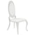 Step into sophistication with this stunning transitional dining chair. Boasting a regal ambiance, it effortlessly combines fresh modern style with traditional elegance. The lovely oval seat back and ornate curved legs evoke a sense of timeless grace, while the creamy white upholstery adds a touch of brightness to any setting. With its chrome finish frame adding a sleek touch, this dining chair is sure to elevate the personality of any space. Experience luxury and comfort all in one with this exceptional piece of furniture.