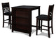 Introducing the versatile Counter Drop Leaf Table and Chair Set, designed with small spaces in mind. This stylish dining set features two 8" drop-down leaves, allowing you to easily transform the table from a 42" round dining set to a space-saving 24" wide design. Crafted from solid Rubberwood legs, this set offers exceptional strength and stability. The dining table showcases an elegant reverse diamond Mindi wood veneer top, highlighting the beautiful wood grains and enhanced by a warm brown finish. The set includes two comfortable counter height chairs, complete with black PU upholstered seat cushions and backrests for added comfort. Additionally, the chairs feature wood footrests and a unique interlocking chain design on the back, adding a touch of sophistication to this casual, contemporary set. Perfect for dining rooms, kitchen nooks, dorms, or game rooms, the Counter Drop Leaf Table and Chair Set combines practicality with style.