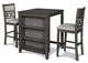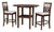 Introducing the Counter Drop Leaf Table and Chair Set, a compact and versatile dining solution perfect for small spaces. With two 8" drop down leaves, this table easily transforms from a 42" round dining set to a slender 24" wide size, allowing it to fit snugly into any tight area. Crafted from solid Rubberwood, the legs of the table and chairs provide lasting strength and stability. The stunning Mindi wood veneer dining table top features a reverse diamond pattern, showcasing the natural wood grains that are enhanced by the traditional brown cherry finish. Included in the set are two counter height chairs with plush seat cushions and backrests upholstered in 100% polyester, ensuring ultimate comfort. The chairs also feature a stylish interlocking chain design on the backrest, adding a touch of sophistication to this inviting dining set. Whether it's for a dining room, kitchen nook, dorm, or game room, this casual and contemporary counter dining set is the ideal choice.