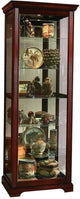 Introducing our exquisite curio, a true reflection of your unique personality and style. With just 24 inches of wall space, you can transform any living area into a captivating showcase. Crafted from the finest hardwood solids and veneers, this curio boasts a rich and elegant Medallion Cherry finish. Drawing inspiration from traditional European aesthetics, it features an arched bonnet adorned with acanthus scroll keystone, canted sides, and a beautifully shaped base. The bevelled glass on the door allows for a peek into your prized possessions, while the mirrored back enhances the display's visual impact. Illuminate your treasures with the built-in halogen lighting, which adds a touch of drama and sophistication. The adjustable glass shelves provide flexibility in showcasing items of various sizes, and the adjustable glides ensure perfect leveling. Upgrade your living space with this remarkable curio and let your personality shine through every intricate detail.