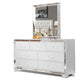 Introducing our exquisite mirror trim nightstand, designed to elevate the aesthetics of any space with its glamorous charm. The shimmering mirror finish adds a touch of elegance, while the large crystal knobs on each drawer serve as dazzling accents, providing an extra dose of sparkle. Create a captivating ambiance in your bedroom or living area with this stunning piece that effortlessly combines functionality and sophistication.