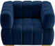 Indulge in unparalleled luxury and sophistication with our exquisite velvet loveseat. Dressed in lustrous black velvet upholstery, this piece exudes elegance while offering unparalleled comfort. Its generously padded construction invites you to sink in and relax, providing a soothing haven after a long day. The deep biscuit tufting adds a touch of grandeur to its oversized silhouette, elevating the overall aesthetic appeal. Furthermore, the tufting serves the practical purpose of keeping the fill intact, ensuring long-lasting plushness. To customize your desired look, the Gwen loveseat comes with two sets of legs in either a glamorous gold or sleek chrome finish. Embrace the allure of comfort and style with this remarkable velvet loveseat.