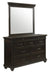 Elevate the style and functionality of your bedroom with the stunning 9-Drawer Dresser with Mirror. This horizontal dresser boasts nine generously-sized drawers, providing ample storage space for all your belongings. The top drawers are lined with soft black felt, ensuring that your more delicate items remain safe and protected. The dresser's sleek black finish perfectly compliments the dark metal drawer hardware, creating a timeless and elegant aesthetic. With its beveled edges and charming bun feet, this transitional dresser is sure to enhance the overall beauty of your bedroom. Bring this sophisticated piece into your home today and relish in its enduring appeal for years to come.