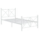Elevate your sleeping space with an air of elegance and sophistication with this chic metal bed. With a variety of styles and colors to choose from, this piece is guaranteed to enhance any bedroom's aesthetic. Its sleek X-style pattern on both the head and footboard adds a touch of modern charm, making it a perfect fit for guest bedrooms or even youth bedrooms. The bed's straight legs and airy appeal make it ideal for transitional spaces, seamlessly blending function and style. Experience the perfect fusion of sophistication and comfort with this exquisite metal bed.