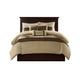 Elevate the look of your bedroom with the Madison Park 7 Piece Comforter Set. This luxurious set features a pieced microsuede design in contrasting taupe and brown hues, creating a soft and cozy atmosphere. The matching shams and solid brown bed skirt perfectly complement the faux suede comforter, while the three decorative pillows with embroidered designs add a touch of elegance. Machine washable for easy maintenance, this comforter set is perfect for adding a traditional, yet refined touch to any bedroom. Please note that items in the set may arrive in rolled or compressed packaging, so fluffing or steam ironing may be required to remove wrinkles before use.
