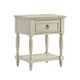 Introducing the Two Drawer Nightstand, a perfect addition to bring a touch of chic country charm to your room. Made of durable solid and manufactured woods, this nightstand showcases a stylish off-white finish that effortlessly fits into any dacor. It features two spacious drawers, providing ample storage space for all your small bedside essentials. The elegant crown moldings, sleek pull knobs, and charming turned legs enhance the country-forward styling, adding a unique flair to your space. With light assembly required, this nightstand is not only functional but also easy to set up. Experience the perfect blend of rustic charm and contemporary elegance with the Two Drawer Nightstand.