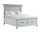 Introducing the King Platform Storage Bed - a stunning addition to any home. This bed not only offers comfort but also functionality, with two generous storage drawers in the footboard. Say goodbye to cluttered spaces and hello to a tidy bedroom. The headboard is a showstopper with its stylish plank design, giving the bed a touch of modern sophistication. Finished in a timeless gray hue, this piece will effortlessly blend into any decor scheme. The dark metal drawer hardware perfectly complements the overall aesthetic, while the bevel edges and bun feet add a touch of elegance. Get ready to indulge in luxurious nights of sleep with the King Platform Storage Bed.