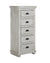 Introducing the charming and rustic lingerie chest, perfect for adding a touch of farmhouse style to your bedroom. This piece showcases hand applied distressing on rough hewn and planed pine solids, creating a beautifully natural look. The tops and ends are made of solid planked panels, giving them a sturdy and substantial feel. With oversized thick tops and parting rails, this chest exudes a sense of strength and durability. The tongue and groove construction, along with pine solids, ensures long-lasting quality. The inset drawers are constructed with solid pine interiors, equipped with metal positive stop guides for smooth and convenient usage. Adding to its antique appeal, the nostalgic cup pulls feature a gunmetal finish. All of these exquisite details come together in a charming Chalk Gray finish, making this lingerie chest the perfect addition to your country-inspired bedroom dacor.