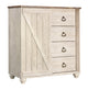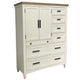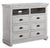 Introducing our stunning media chest, designed to bring a natural farmhouse aesthetic to your living space. The hand applied distressing on the rough hewn and planed pine solids lends a charming, rustic feel. With solid planked panels on the tops and ends, as well as oversized thick tops and parting rails, this chest exudes durability and strength. The tongue and groove construction, along with the pine solids, ensures that this piece will withstand the test of time. The inset drawers, constructed of solid pine drawer interiors, feature metal positive stop guides and nostalgic cup pulls with a gunmetal finish. In addition to ample storage for your media components, this chest also offers plenty of space for storing clothing. To complete its captivating look, it is finished in a chic chalk gray shade. Elevate your interior with this exquisite media chest, perfectly blending style and functionality.