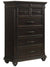 Transform your bedroom with the stunning 6-Drawer Chest. This vertical chest boasts six generous drawers, providing ample storage space for all your essentials. The top drawer is lined with black felt, ensuring your delicate items are kept safe and secure. The sleek black finish is perfectly complemented by the dark metal drawer hardware, creating a timeless and sophisticated aesthetic. With its beveled edges and bun feet, this transitional style chest is the epitome of elegance. Make a lasting impression in your home with this exquisite piece that guarantees day-to-day enjoyment.
