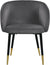 Elevate the elegance of your dining area with our exquisite Grey Velvet Dining Chair. Crafted with opulent grey velvet upholstery, this chair is designed to bring a touch of luxury to any space. The curved back provides exceptional comfort, allowing you to unwind during meals and gatherings. Supported by sleek black metal legs featuring refined gold tips, this contemporary chair effortlessly merges style with durability. Make a statement in your home with this remarkable piece that guarantees long-lasting allure.