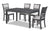 Introducing the New Classic 5-Piece Wood Rectangle Dining Set, a perfect combination of durability and elegance. Crafted from solid Rubberwood and Mindi veneers, this set offers long-lasting quality. The contemporary gray finish adds a touch of timeless beauty to your space, highlighting the natural grain of the wood. With a 60-inch dining table that comfortably accommodates up to six people, it's perfect for family dinners or game nights. The dining chairs feature a unique interlocking chain back design and easy-care 100% polyester upholstered cushions in light gray, providing both style and comfort. Supported by sturdy solid wood legs, these chairs are built to last. The tapered legs and clean lines complete the transitional look of this set. Your purchase includes the easy-to-assemble dining table and four chairs, and comes with a one-year warranty for peace of mind. Upgrade your dining area today with this classic and functional dining set.