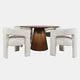 Revitalize your living space with the breathtaking Luxury Mid-Century Modern Five Piece Dining Set. Elevate your dining experience with the four upholstered dining chairs, adorned with plush Jacquard fabric for ultimate comfort. The centerpiece of the set is the 50-inch modern pedestal dining table, showcasing a striking rounded back with integrated arms. This versatile piece not only adds style to your dining room, but also serves as a chic accent chair in your living room. With its mid-century modern tapered base and walnut brown finish, the table exudes sophistication and elegance. Its minimalist design features an alluring curved silhouette that effortlessly combines contemporary simplicity with everyday practicality. Whether it's a cozy family dinner or a vibrant game night, this dining set promises to transform any space into a haven of style and functionality.