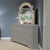 Enhance your European ambiance with our exquisite scrolled mirror. The captivating Weathered Bisque finish adds a touch of rustic charm, beautifully highlighted by intentional artistic chipping. Designed with sophistication in mind, this mirror showcases a beveled glass that is elegantly adorned with dog bone accents in the corners, creating a unique and stylish focal point. Every glance in this mirror will be a delightful experience, as it effortlessly complements your traditional decor.