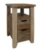 Introducing our charming chairside end table, perfect for adding a touch of farmhouse fresh or shabby chic style to any space. With its delightful two-tone finish of weathered oak and antique white, this table exudes quaint character and will effortlessly complement your country cottage decor. The plank-and-frame style top and black faceted hardware add extra charm to this piece. Don't let its compact size fool you - the smooth-gliding drawer provides ample storage for remote controls and other essentials. Plus, the integrated power supply with dual USB charging ports ensures that your personal devices are always conveniently charged and within reach. Upgrade your living space with this truly impressive and practical end table.