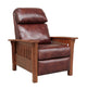 Introducing our striking mid-century modern elevated recliner, designed to elevate your comfort and style. This recliner boasts a power recline and power headrest, allowing you to effortlessly find your perfect lounging position. Its box seat style pad over chaise seating, complemented by pocketed coil springs, ensures utmost cushioned support from head to toe. Tucked pillow arms and a clean line pub back add a touch of elegance to its overall appeal. The conveniently placed power buttons feature a built-in USB port, so you can keep your devices charged while relaxing. To complete the look, the dark teak finished legs add a touch of sophistication. Experience ultimate relaxation and contemporary charm with this exceptional recliner.