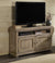 Introducing the epitome of elegance and sophistication - our exquisite console made from salvaged wood with a distinctive finish. Its unique tongue and groove construction is a testament to the timeless craftsmanship that ensures durability for years to come. The hand-applied distressing on rough hewn and planed pine solids adds a touch of vintage charm, reminiscent of chipped paint and natural pine hues. The solid planked panels on the tops and ends, along with the oversized thick tops and parting rails, exude a sense of sturdiness and quality. The gunmetal finish on the nostalgic knobs adds a touch of nostalgia to the overall design. This 54" console comes complete with adjustable shelves, grommets for wire management, and wood doors, making it compatible with most sound bars. Rest assured, this console is fully set up, ready to enhance your living space with its timeless appeal and functionality.