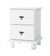 Experience the epitome of style and craftsmanship with our exquisite collection's timeless design. Crafted from 100% solid wood, this 2-drawer nightstand is a true heirloom piece that will never go out of fashion. Its elegant intricately carved edges and turned bun feet add a touch of sophistication to any room. The nightstand's solid wood construction ensures durability and longevity, making it a wise investment. While it beautifully complements the matching Kyle bed, it can also be purchased separately to add a touch of elegance to your existing decor.