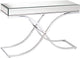 Introducing our latest addition to the collection: a sleek and carefully designed product featuring an X curved framework. The spacious table top space offers ample room for all your needs, whether it be working, studying, or simply displaying your favorite decor. What sets this piece apart is the exquisite detail of smoke mirror panels, enhancing its overall radiance and adding a touch of unique elegance. Elevate your space with this one-of-a-kind product that combines style and functionality seamlessly.