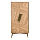 Experience the perfect blend of style and functionality with our small cabinet. Crafted from solid oak, this piece features a captivating display of geometric shapes on its face, showcasing a harmonious combination of colors, grains, and textures. Opening the two doors, secured with magnetic catches, you will discover ample storage space with two interior shelves. To further elevate its visual appeal, iron accents have been incorporated, adding a touch of intrigue. This small cabinet is a true testament to the beauty of craftsmanship and is sure to enhance any living space.