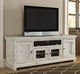 Introducing our exquisite 74" console, designed to add a touch of elegance to any living space. Crafted with salvaged wood, this piece showcases a unique tongue and groove construction that harkens back to classic craftsmanship. The hand-applied distressing on rough hewn and planed pine solids creates a natural, vintage look, with hints of chipped paint and glimpses of the beautiful natural pine color shining through. The solid planked panels on the tops and ends, along with the oversized thick tops and parting rails, ensure durability and longevity. The gunmetal finish on the nostalgic knobs adds a touch of sophistication. With adjustable shelves, grommets for wire management, and wood and glass doors, this console is the perfect solution for organizing your entertainment essentials. It can also accommodate most sound bars, ensuring an immersive audio experience. Rest easy knowing that this console comes fully setup and ready to enhance your living space.