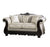 Introducing our breathtaking loveseat, the epitome of timeless beauty blended with contemporary charm. Crafted with the perfect balance of traditional design elements and a touch of modern flair, this exquisite piece is destined to become the focal point of your living room. The loveseat boasts intricate wooden trim details, round bun feet, and exquisitely carved motifs, elevating the overall elegance and opulence of your space. Its seat is adorned with a unique back featuring split deep tufts, creating a sense of depth and luxury. Wrapped in gorgeously patterned fabric, this loveseat is a true work of art that will transform your living room into a haven of style and sophistication.