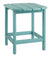 Transform your outdoor space with the addition of this charming outdoor end table in a vibrant turquoise color. Crafted with MEGA TUFF high-density polyethylene material, this table is built to withstand the harshest elements and maintain its beauty throughout the seasons. The slatted top, featuring gently rounded corners, not only adds an aesthetic appeal but also allows rainwater to easily drain off. With its cottage-quaint charm and exceptional functionality, this outdoor end table is a must-have for any outdoor oasis.