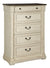 Embrace the charm of farmhouse living with this stunning chest of drawers, perfect for those who love the fresh and rustic aesthetic. Crafted to capture the essence of shabby chic and country cottage styles, this piece features a beautiful two-tone finish. The gently distressed weathered oak exterior beautifully contrasts with the antique white accents, adding a touch of quaint character to any space. The craftsmanship is impeccable, with dovetail construction ensuring the durability and longevity of the five smooth-gliding drawers. As a testament to attention to detail, the top drawer is even lined with felt, keeping your delicate belongings protected. Upgrade your home with this chest of drawers that effortlessly combines style and functionality for a truly unique and charming addition to any room.